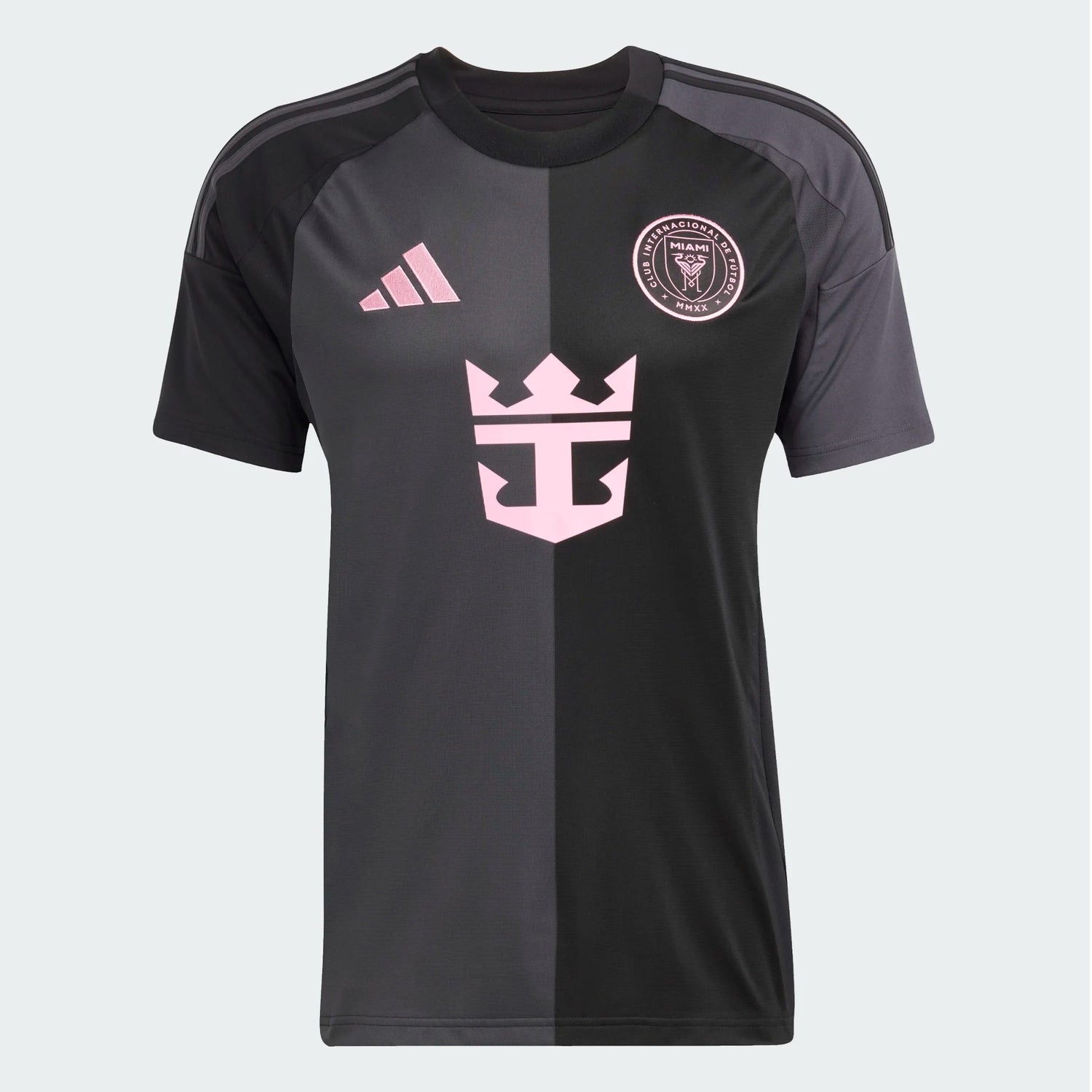 Bring Miami style to the stadium in this elegant Inter Miami CF away jersey from adidas. With pink details popping against a black and carbon half-and-half design, this supporter shirt exudes sophistication. Its moisture-managing AEROREADY and soft fabric are there to keep fans comfortable. A club sign-off and sewn-on crest show you appreciate first-class soccer. This product is made with 100% recycled materials. By reusing materials that have already been created, we help to reduce waste and our reliance on finite resources and reduce the footprint of the products we make.