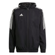 The weather is just another opponent to be bested. This adidas soccer jacket lets you train through light showers and drizzle. Its bungee-adjustable hood and elastic cuffs help keep out the elements. Zip pockets ensure your possessions stay dry.